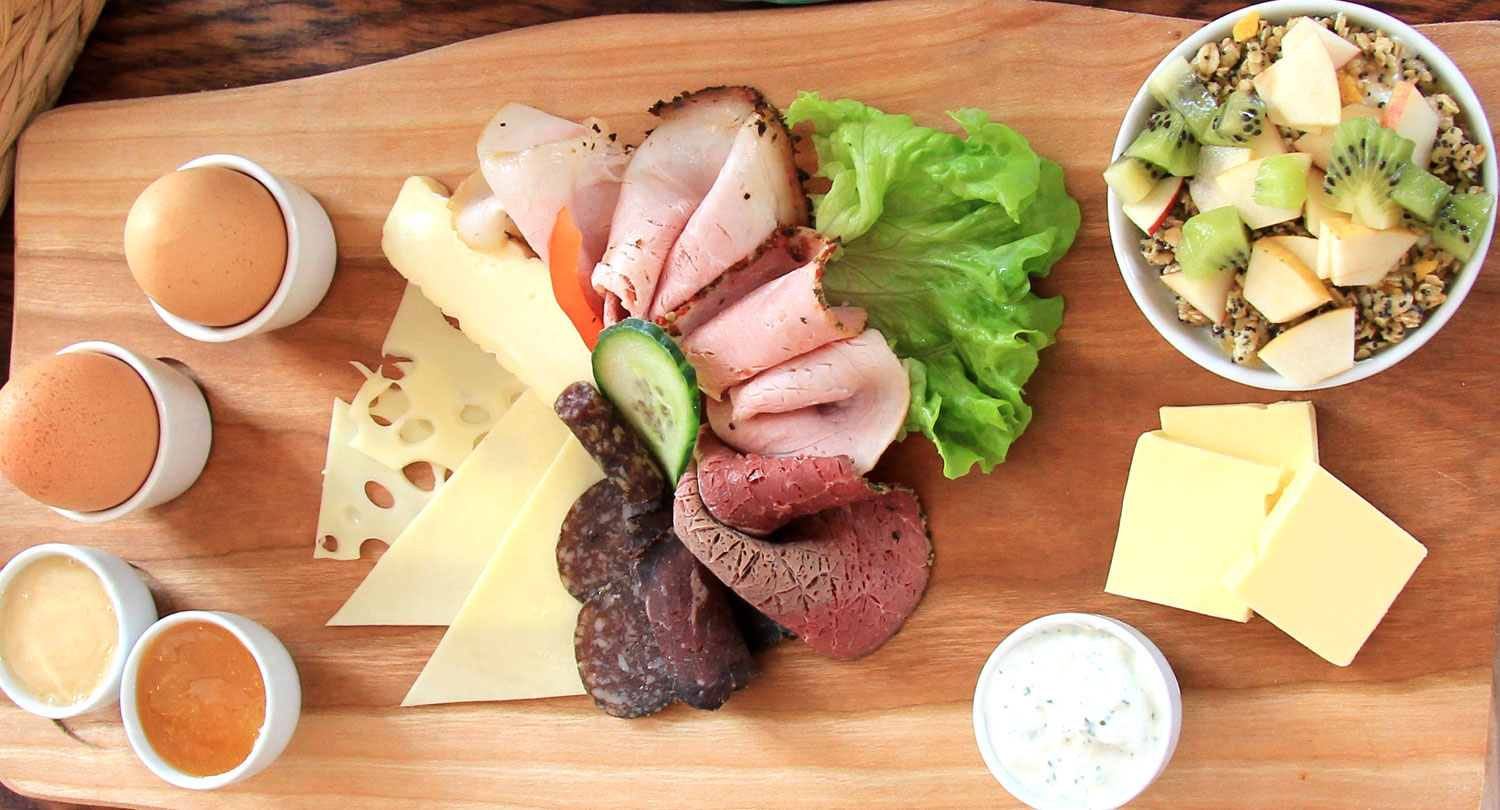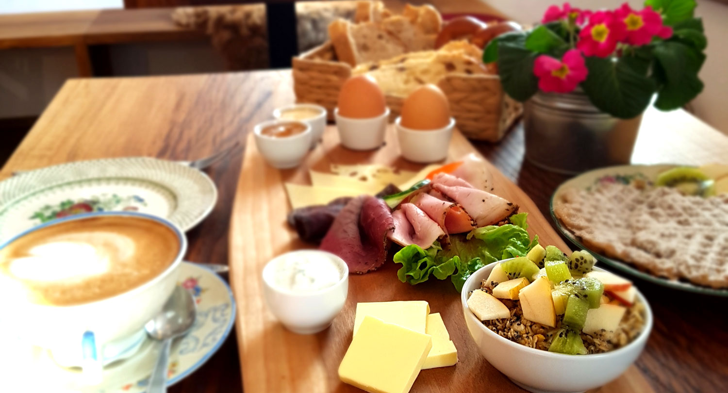 Von hausgemachten Kuchen bis hin zu kesselfrischen Weißwürsten – für jeden Geschmack ist etwas dabei. Bei unserem beliebten „Basic- Frühstück” schlemmen sich die Gäste durch eine reichhaltige Schinken- und Käseauswahl, hausgemachte Konfitüre und Honig von den eigenen Bienen.